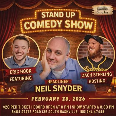 Join us Saturday February 28 for the monthly comedy show! Zach Sterling returns to host the comedy filled evening featuring Eric Hook, headlined by Neil Snyder!